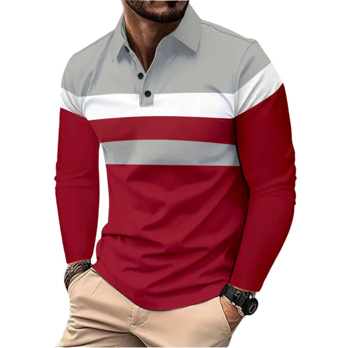 Ontwerp: Klassieke kraag, knoopsluiting, contrasterende strepen